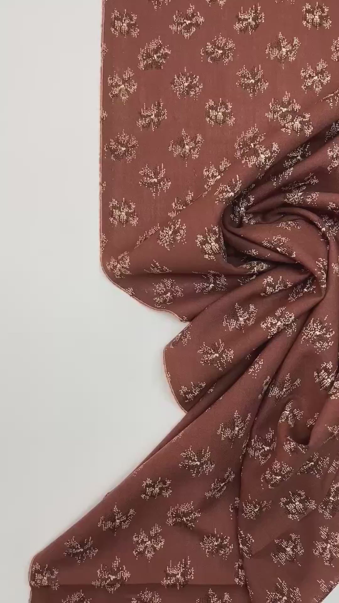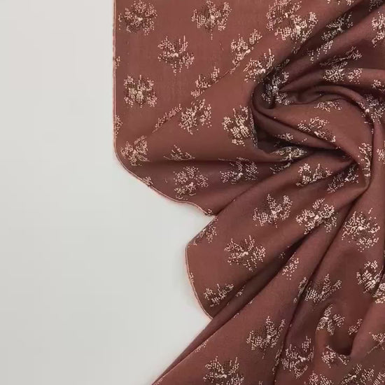 Fabric made in Italy from 100% wool with an elegant print in brown and beige tones. This light and natural fabric is perfect for dresses, blouses, and other feminine garments where both comfort and appearance matter.