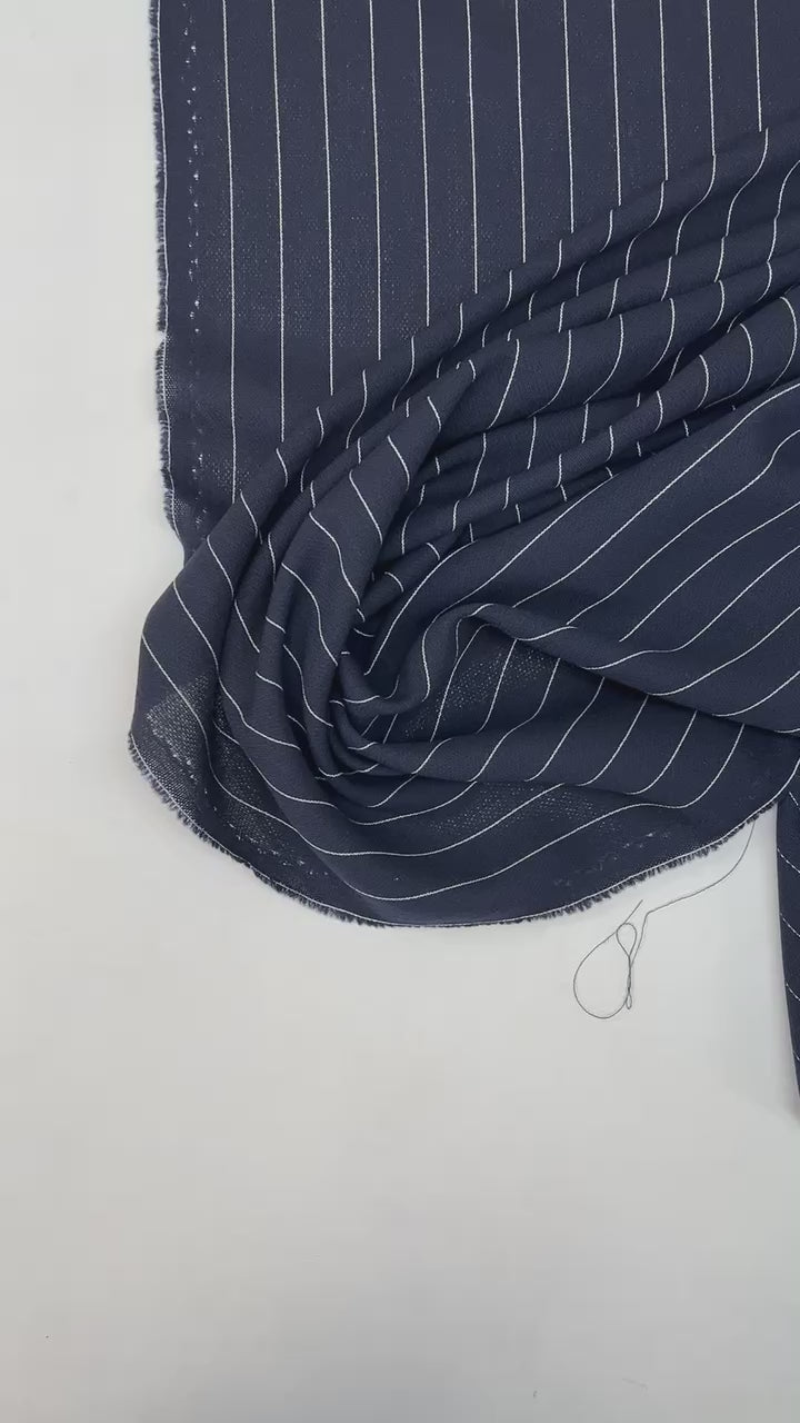 100% Vilnas audums-tumši zils ar baltām svītrām 230 g/m²
