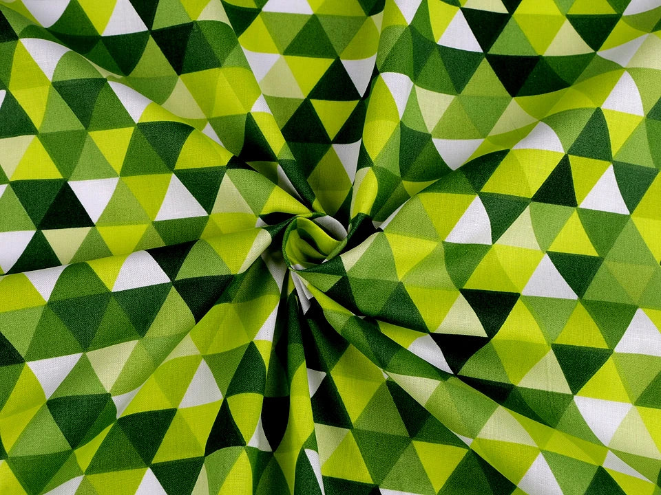 100% Kokvilnas audums-zaļi trijstūri 125 g/m²