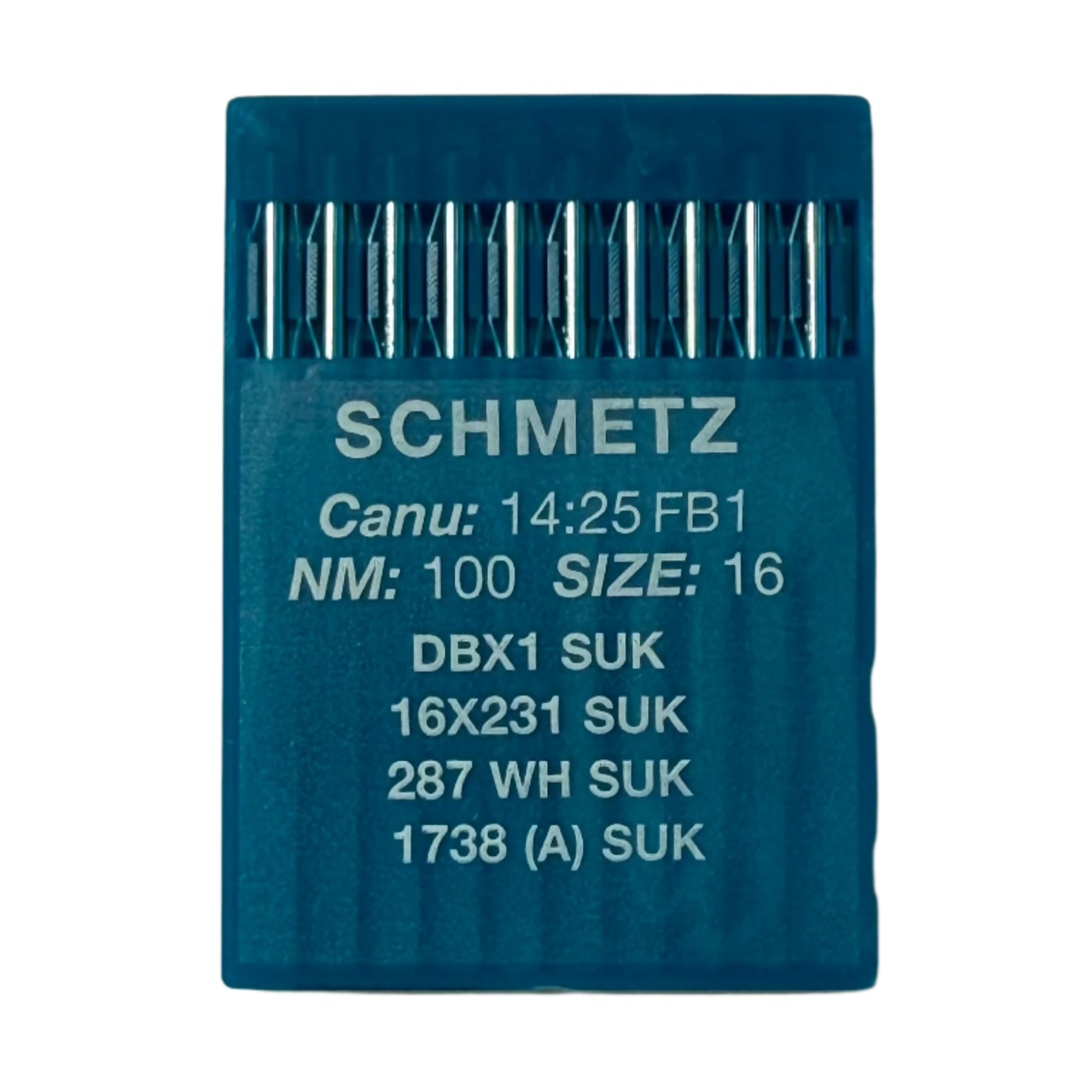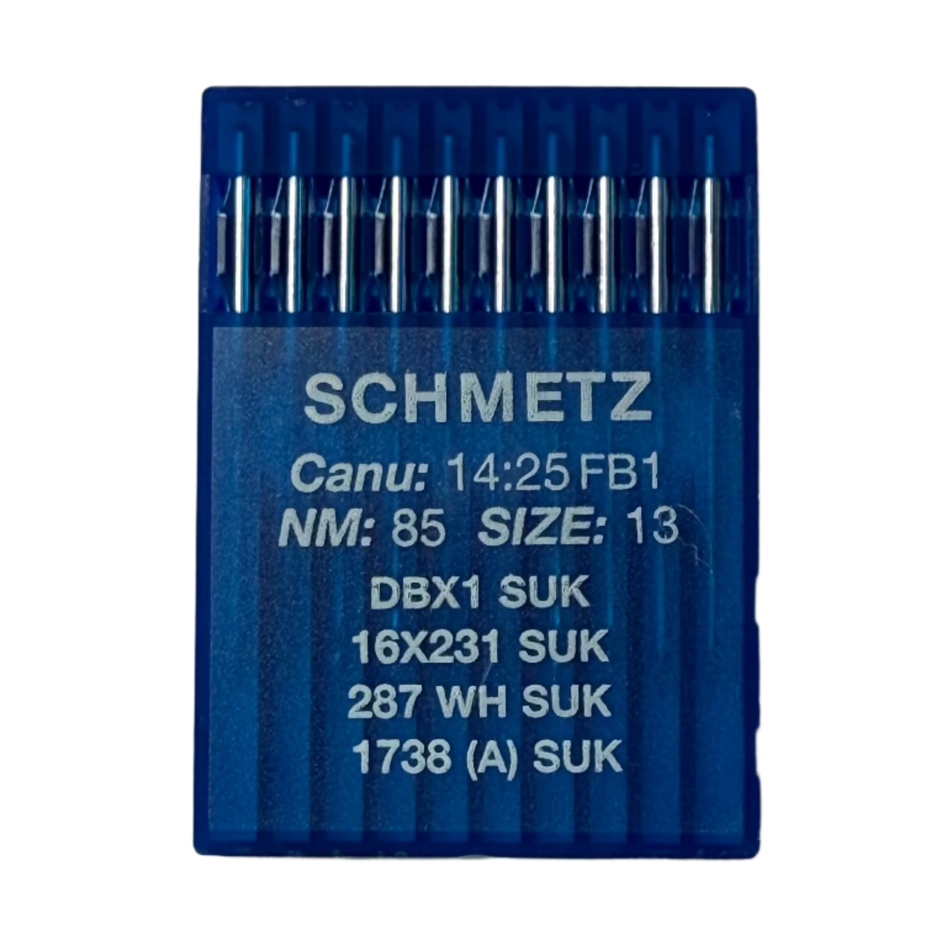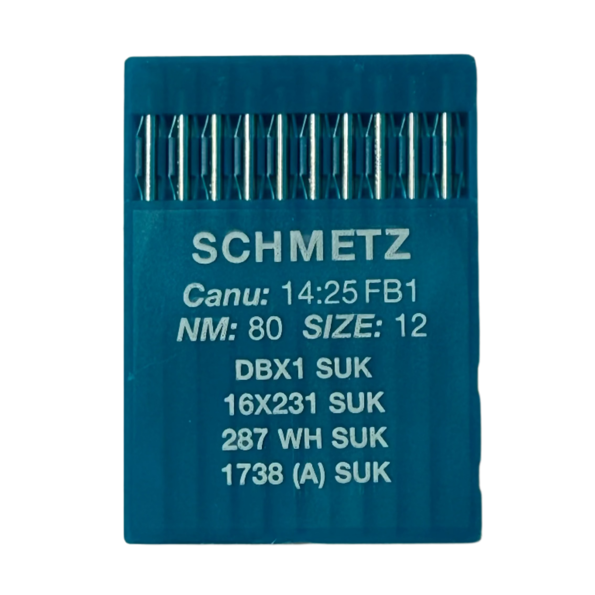 SCHMETZ DBx1 SUK rūpnieciskās šujmašīnas adatas ir paredzētas šūšanai ar taisnā dūriena (lockstitch) rūpnieciskajām šujmašīnām. “SUK” jeb Medium Ball Point gals ir vidēji noapaļots, kas saudzīgi atdala pavedienus, nebojājot auduma struktūru. Šīs adatas ir īpaši piemērotas trikotāžas, džinsa un korsetēm, kur nepieciešama elastība un gluds dūriens.