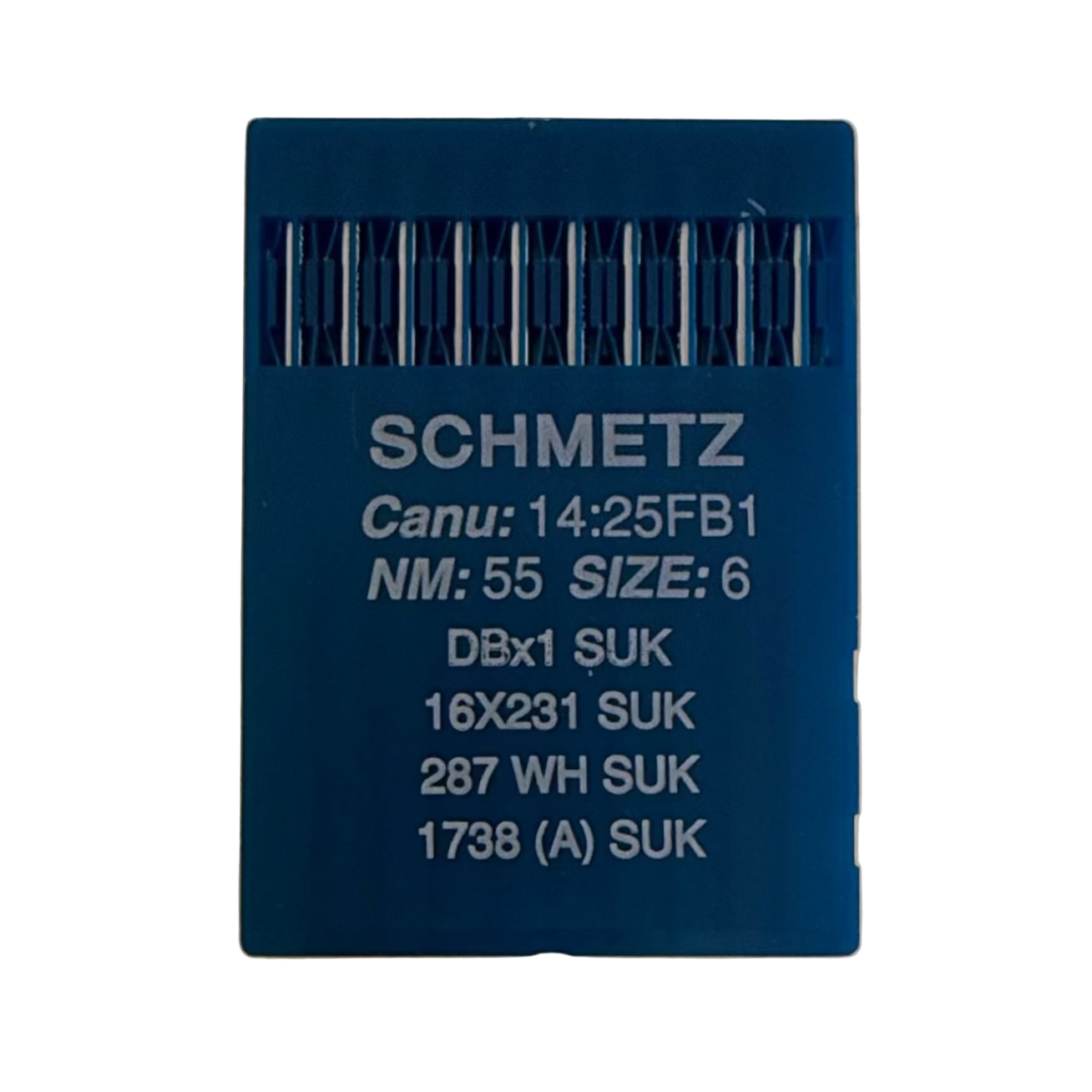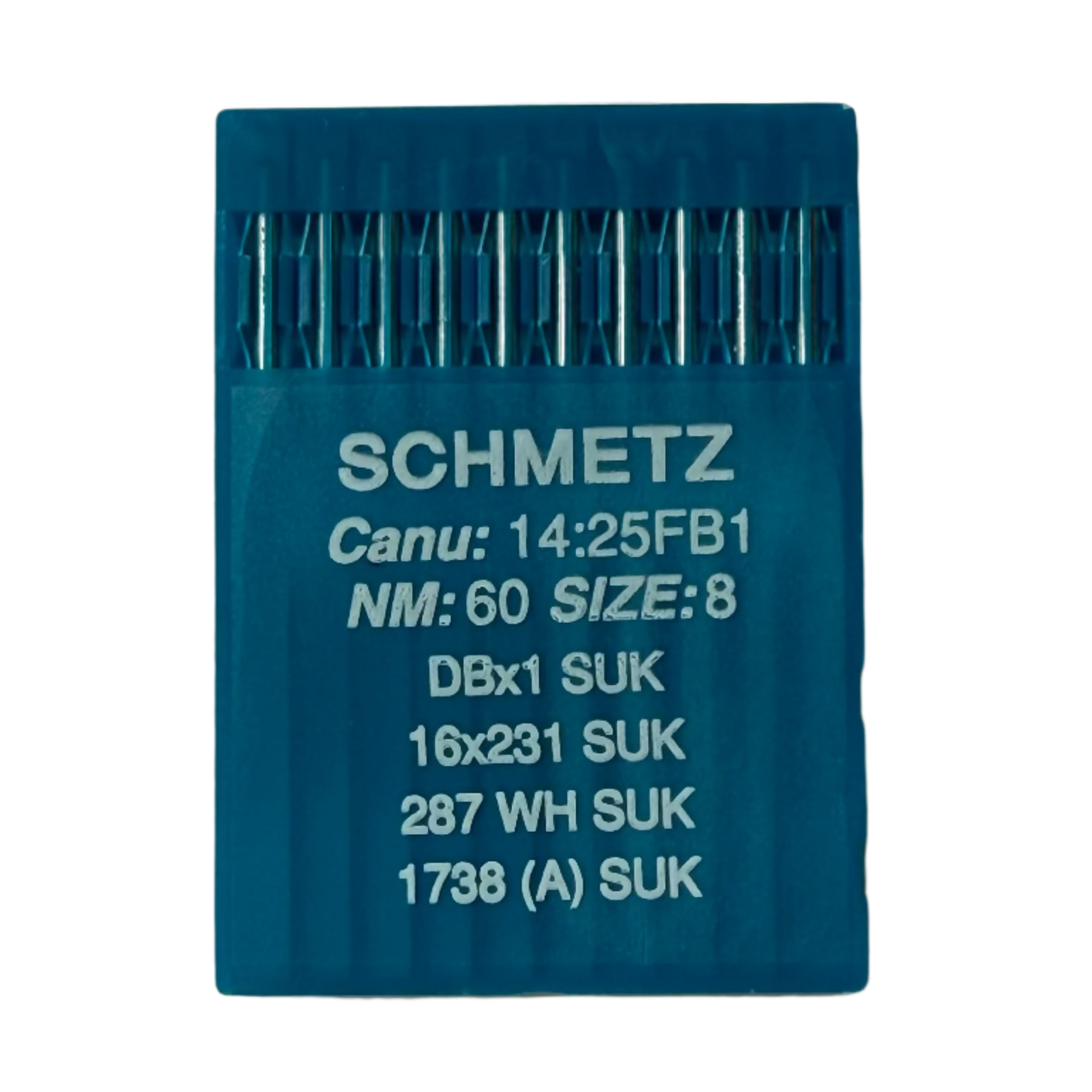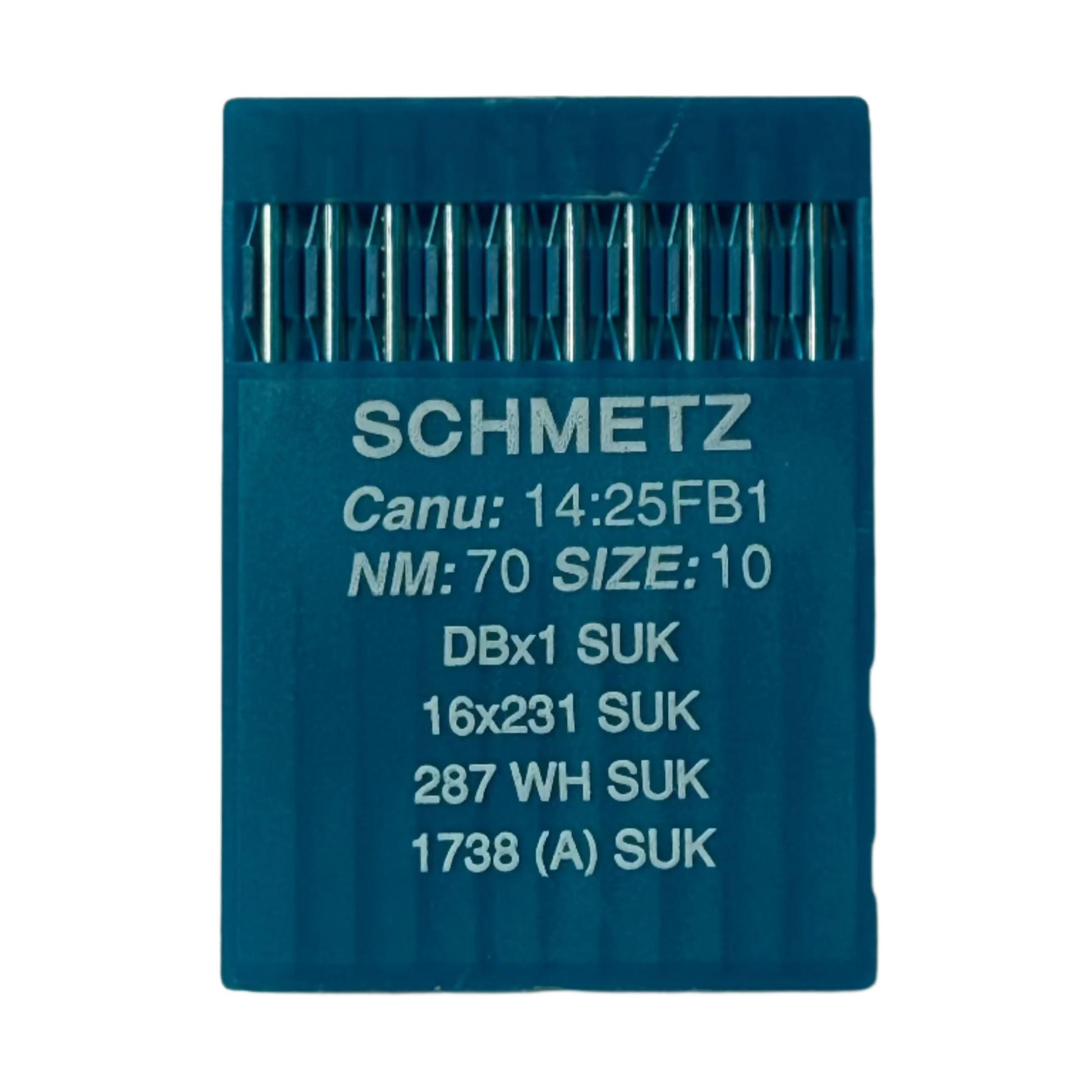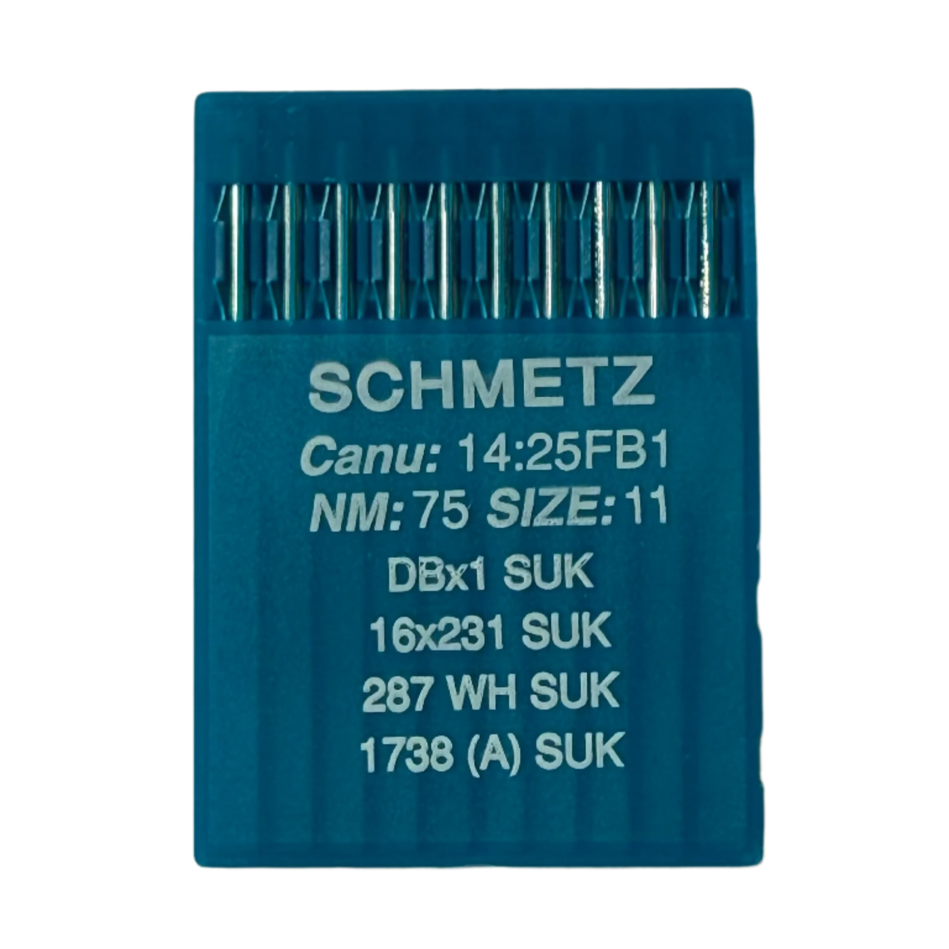 SCHMETZ DBx1 SUK rūpnieciskās šujmašīnas adatas ir paredzētas šūšanai ar taisnā dūriena (lockstitch) rūpnieciskajām šujmašīnām. “SUK” jeb Medium Ball Point gals ir vidēji noapaļots, kas saudzīgi atdala pavedienus, nebojājot auduma struktūru. Šīs adatas ir īpaši piemērotas trikotāžas, džinsa un korsetēm, kur nepieciešama elastība un gluds dūriens.