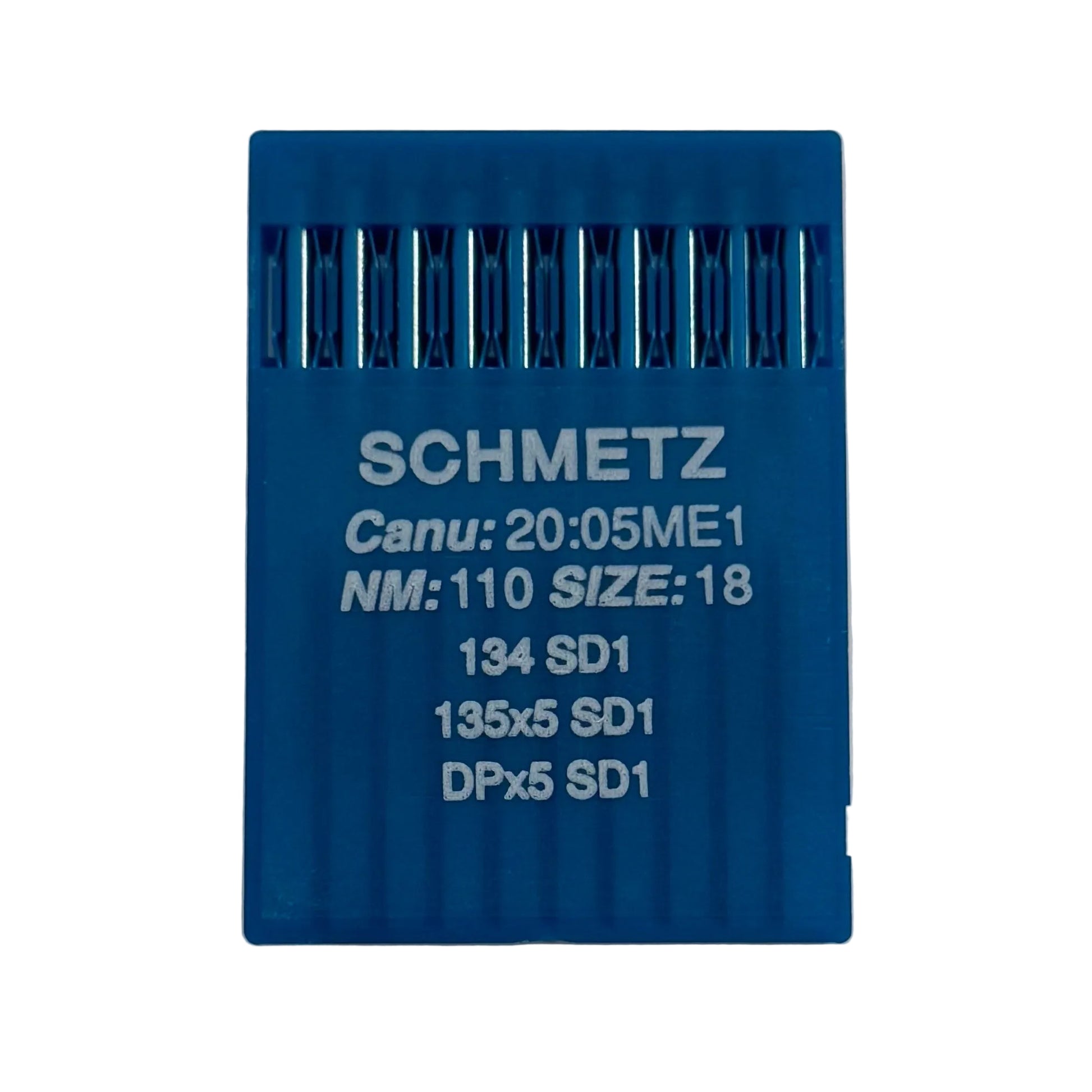 SCHMETZ DPx5 SD1 rūpnieciskās adatas ir paredzētas taisnā dūriena (lockstitch) šujmašīnām, kad jāšuj āda un citi “grūti” materiāli. SD1 jeb “Round point with small triangular tip” ir īpašs smalks trīsstūra griezējspicums, kas veido mazāku iegriezumu nekā tipiskas griezējadatas un nodrošina taisnu, kārtīgu dūrienu arī daudzvirzienu šūšanā (programmējamās šujmašīnās).