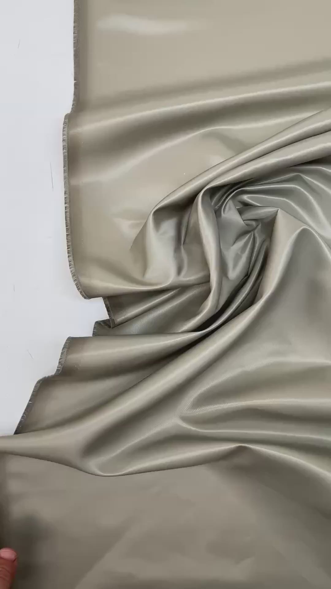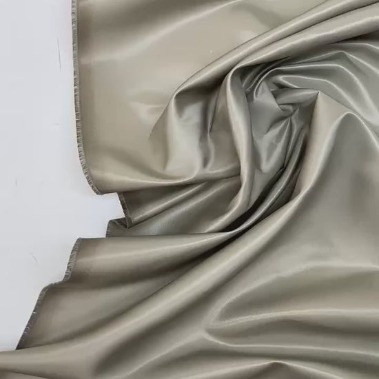 Japānā ražots gluds satīna–tvila audums pelēkā tonī ar vieglu spīdumu un labu noturību. Audums ir vidēji blīvs, ūdensizturīgs un nestiepjas, saglabājot formu un elegantu kritumu. Piemērots jakām, virsdrēbēm un strukturētiem apģērba dizainiem.