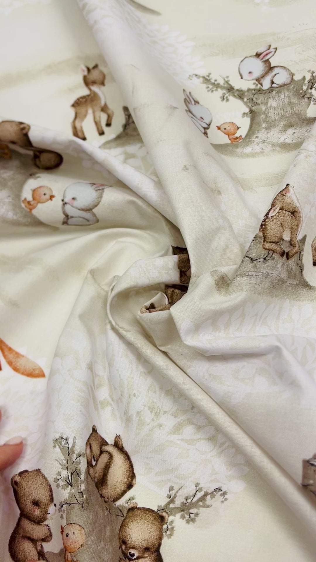 100% Kokvilnas audums- zvēri pie celma 125 g/m²
