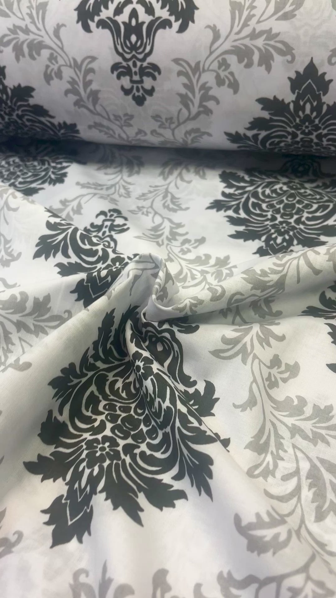 100% Kokvilnas audums-pelēks un melns raksts 130 g/m²