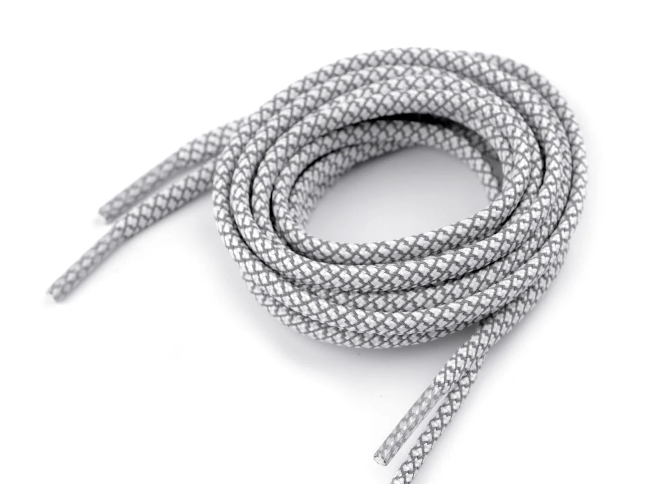 Kurpju šņores| džemperu auklas, atstarojošas, garums 130 cm-gaiši pelēkas