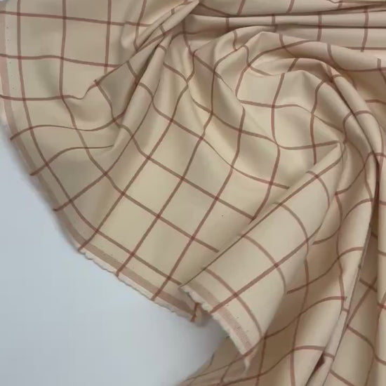 Kokybiška Italijoje pagaminta 100% medvilnės medžiaga su subtiliu rudos–smėlio spalvos languotu raštu. Lengva, kvėpuojanti ir nestandanti, todėl idealiai tinka marškinėliams, palaidinėms ir kitiems kasdieniams drabužiams. Jos natūrali medvilnės struktūra užtikrina komfortą visą dieną, o klasikinis languotas dizainas suteikia drabužiui elegantišką ir universalų vaizdą.
