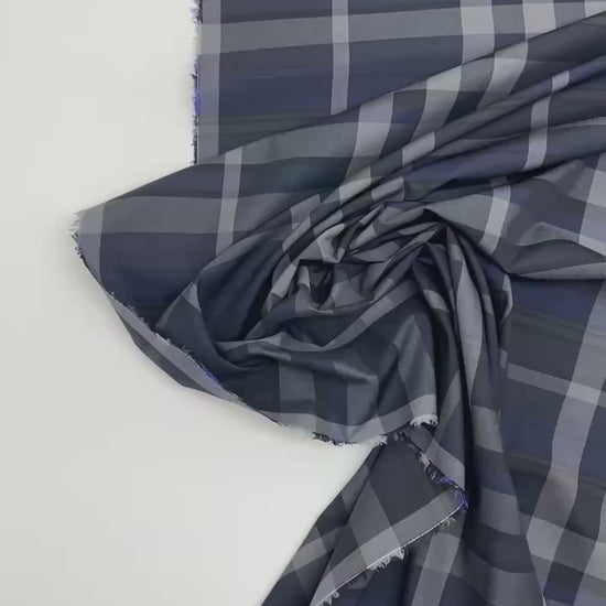 Elegantiškas ir kokybiškas Italijoje pagamintas medvilninis popelino audinys pilkai mėlynos spalvos atspalviais su subtiliomis juostelėmis ir langeliais. Lengvas ir kvėpuojantis audinys, puikiai tinkantis marškinėliams, palaidinėms, kasdieniams drabužiams ir kitiems siuvimo projektams. Jo lygi ir tvirta struktūra užtikrina komfortą ir ilgaamžiškumą, tuo pačiu išlaikant modernią išvaizdą.