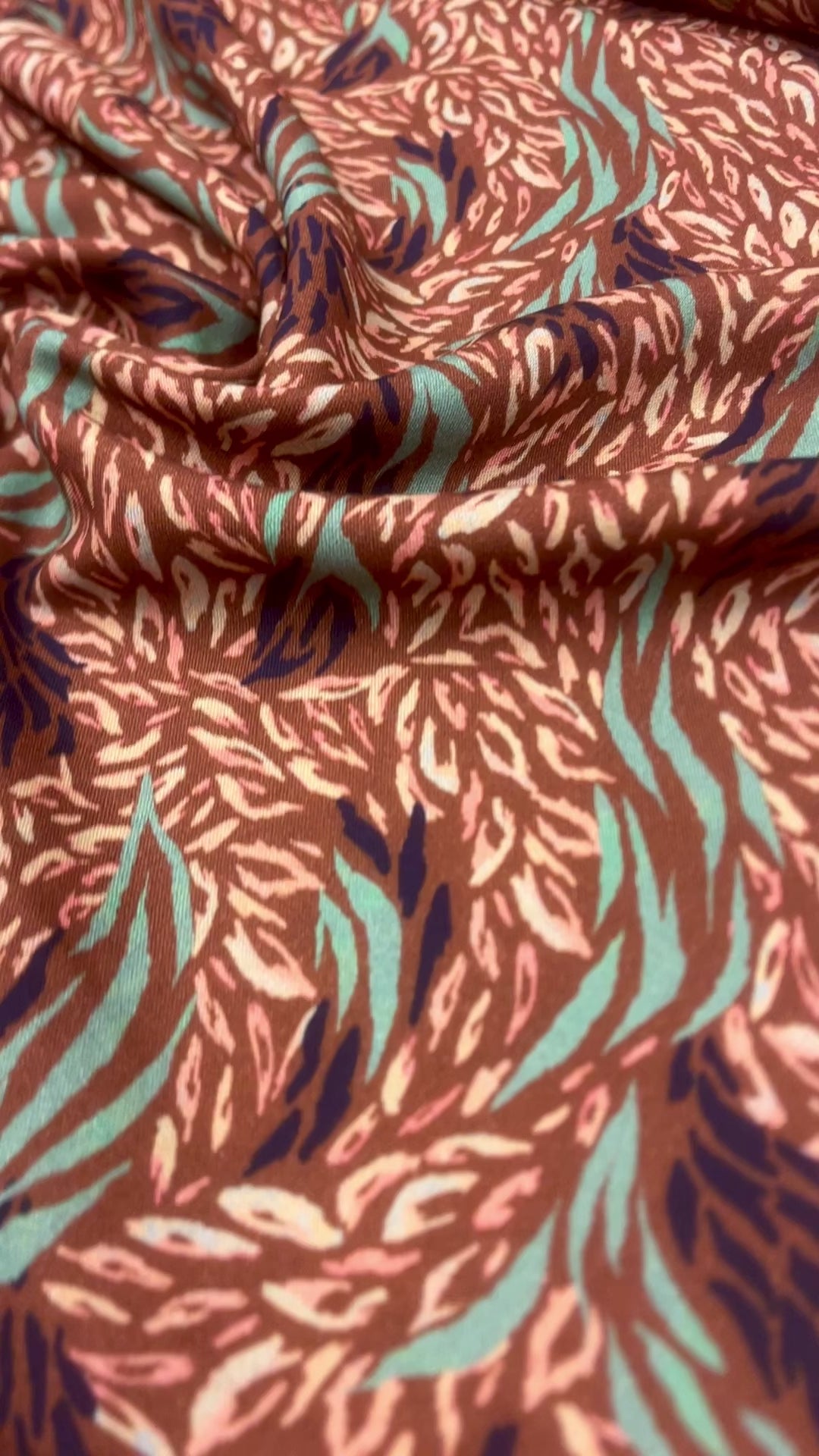 100 % viskozės audinys – rudai žalsvas, mėtų raštas, 125 g/m²